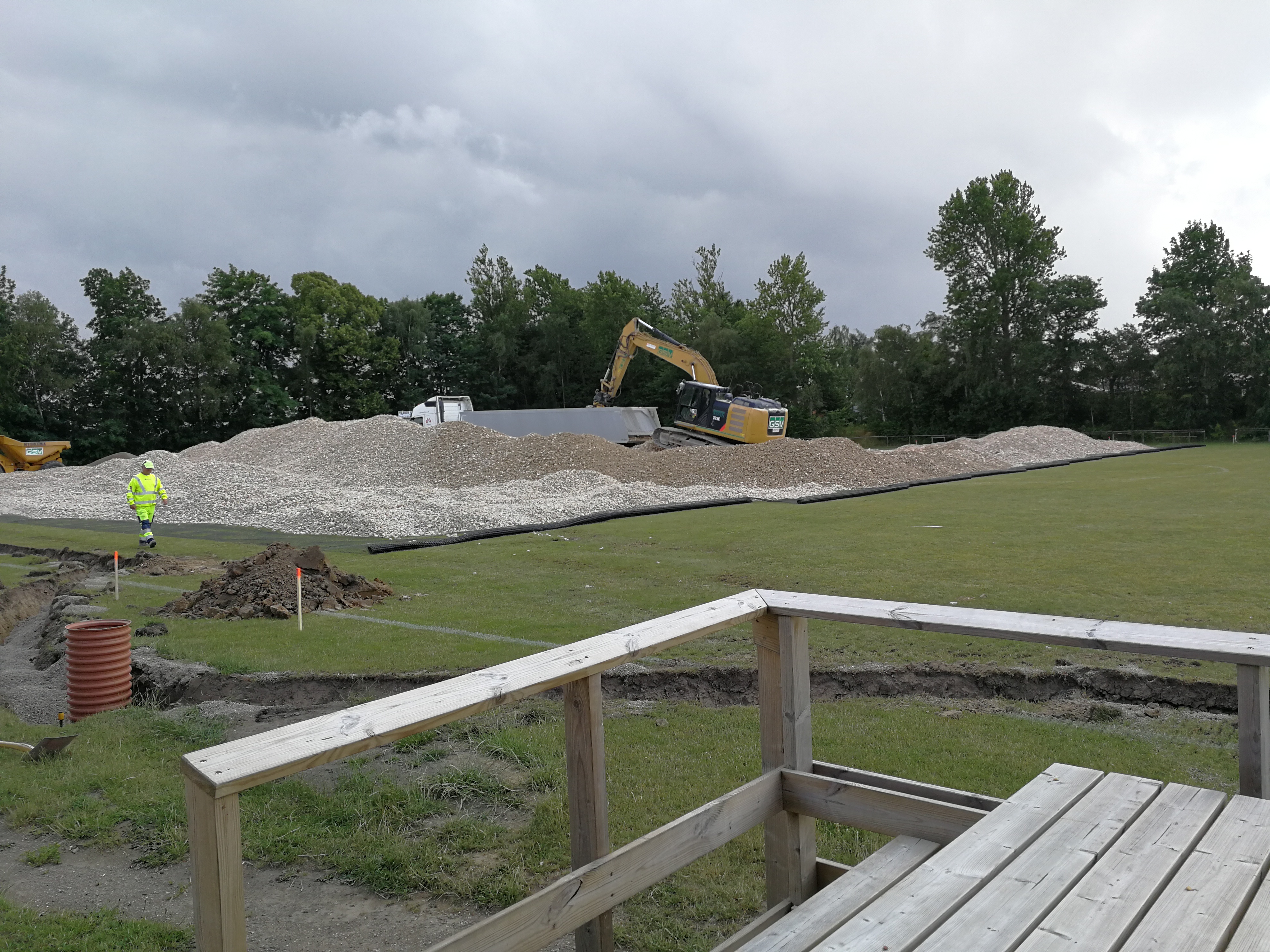 Arbejdet med at anlægge kunstgræsbanen går stærkt. Gå ind under fanen "Kunstgræsbane", hvis du vil se flere billeder og følge med i arbejdet med banen.
